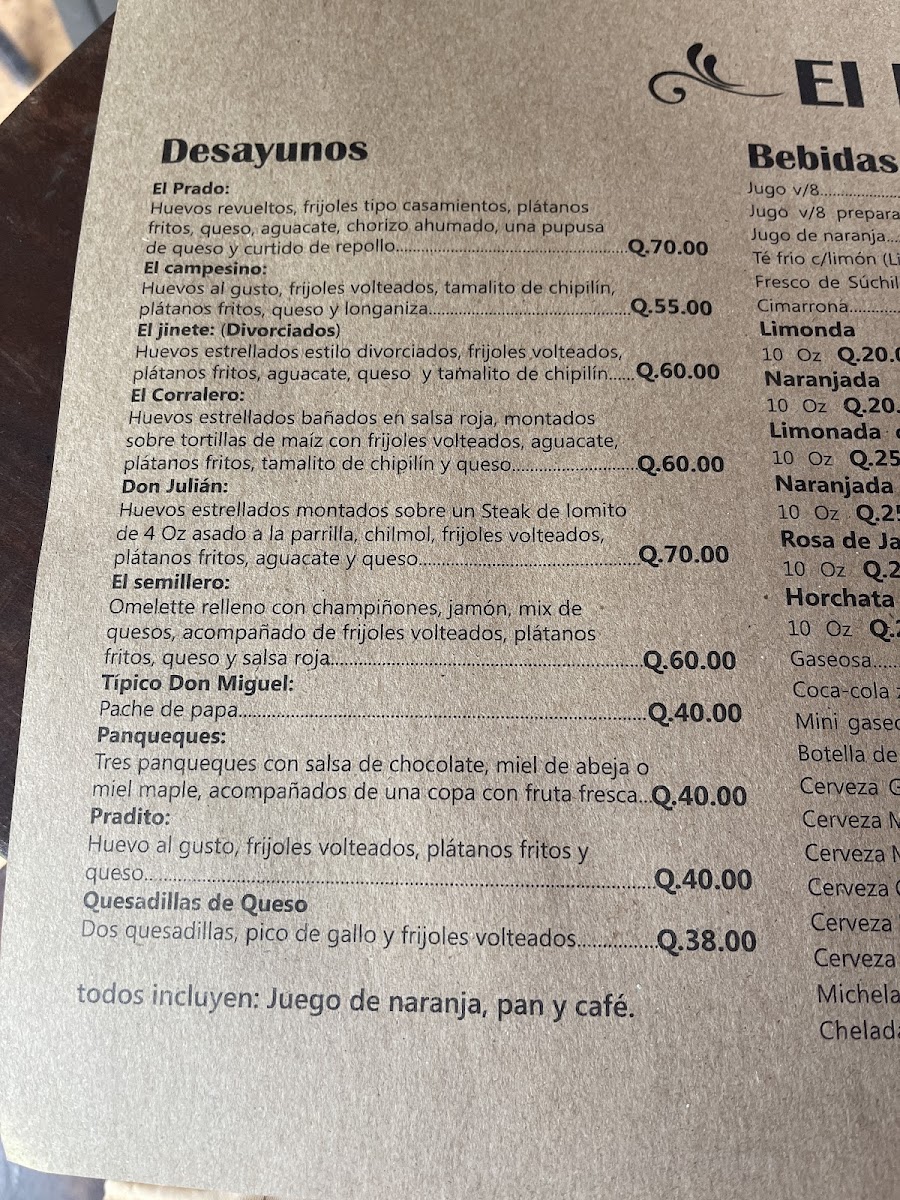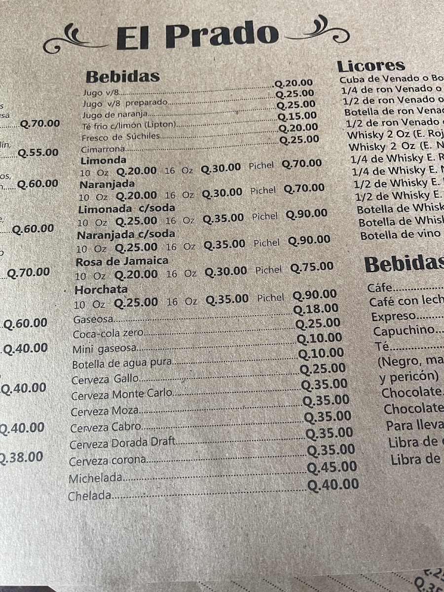 Finally, no meal at Restaurante El Prado would be complete without a cold Cerveza to accompany the rich flavors of the meal, making the overall dining experience thoroughly satisfying.